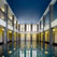 Der Vorgarten, über der Tiefgarage angeordnet, wird in Anlehnung an den historischen Zustand hergerichtet als Parterre mit Brunnen, von einer Pergola gefasst. Auch die Stützmauer mit dem Treppenaufgang wird beibehalten, wobei als Lärmschutzmaßnahme die Pergola straßenseitig verglast wird. So entsteht nach bestehendem Vorbild ein öffentlicher Auftritt zur Straße und ein intimes, private Gartenambiente.