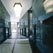 Als Materialien wurden für die Fassade ein blaubunter, bis an die Sintergrenze gebrannter Wittmunder Klinker, im Sockelbereich graugrüner geflammter Granit verwendet.